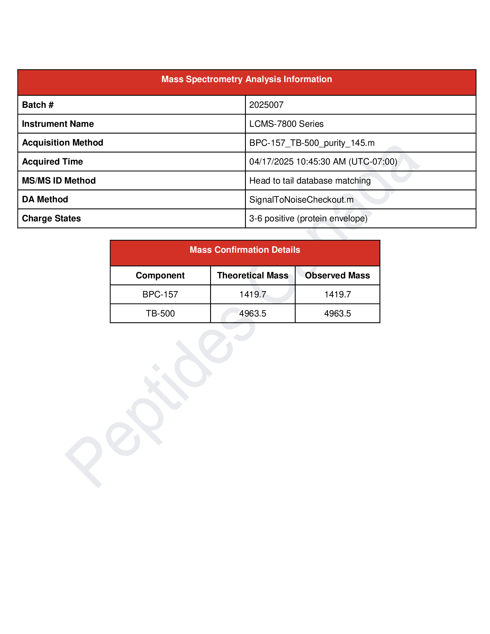 - BPC-157: 1419.7 g/mol (Expected = Observed 1419.7)