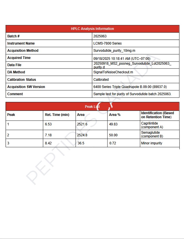 We take a laboratory-first approach to quality. Each batch is made under controlled conditions and verified by an independent lab (HPLC/MS). We only ship batches that test ≥99% purity, and we provide a full COA, including identity, methods, and chromatograms, for your review.