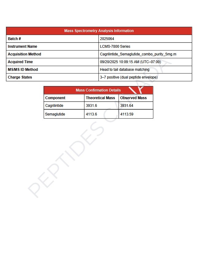 This product contains two synthetic peptide hormones with distinct receptor targets. Due to dual-component structure and manufacturing variability, a single definitive molecular formula is not listed. Analytical identity and purity are batch-verified.