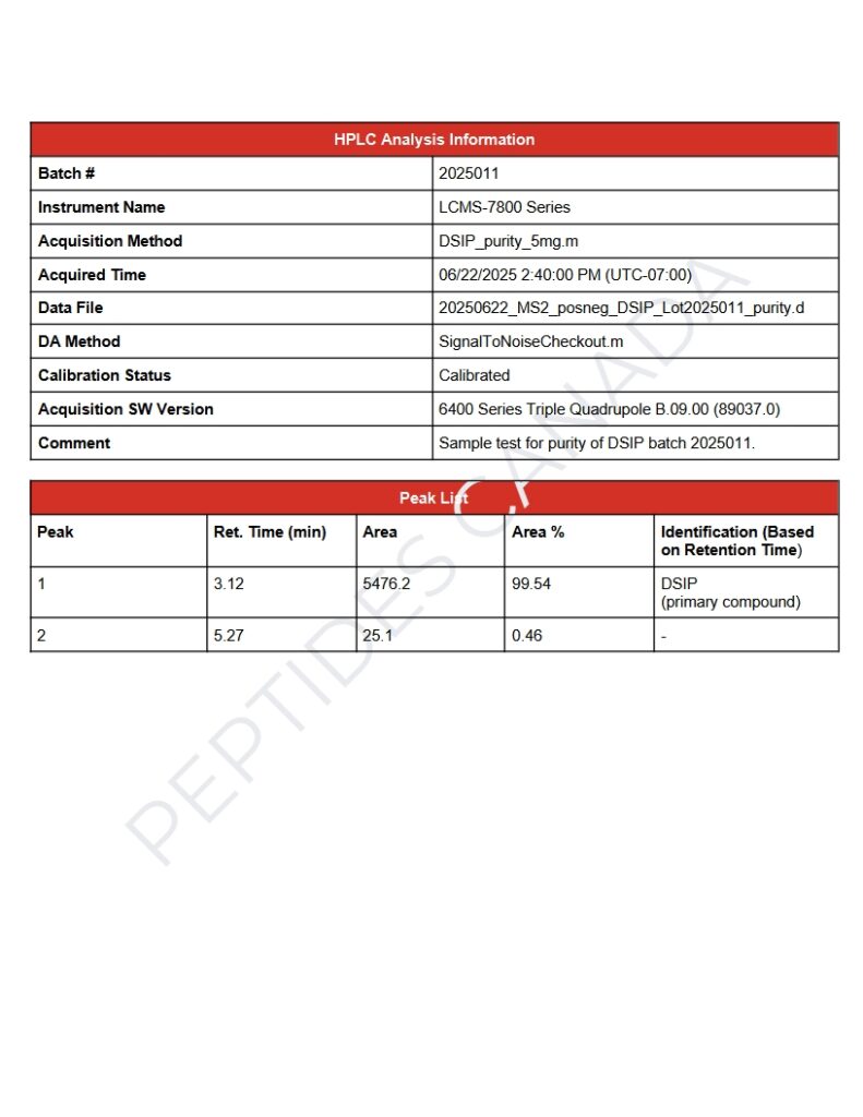 9. Graf MV, et al. “DSIP and neuroendocrine secretion.” Peptides. 1984;5(6):1167–1170. https://pubmed.ncbi.nlm.nih.gov/6150639