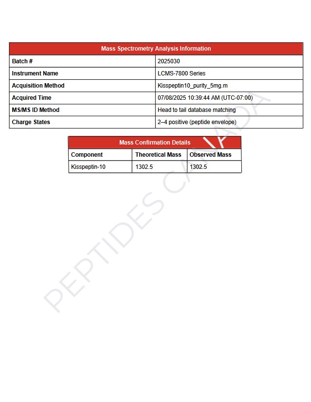 Kisspeptin-10 peptide is available for research and laboratory purposes only. Not for human consumption.